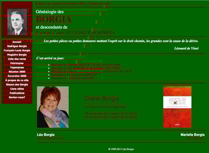 J'ai été très heureuse de faire la page d'accueil du site des BORGIA annonçant ma présence au Salon du livre de Montréal 2011.